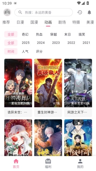 点击动画板块,这里汇聚了众多精彩刺激的动画作品,你还能查看人气排名和评分榜单。