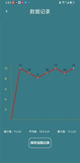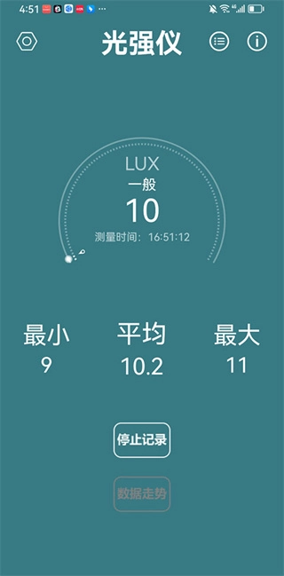 还可以实时查看光的数据记录,也能够点击停止记录;