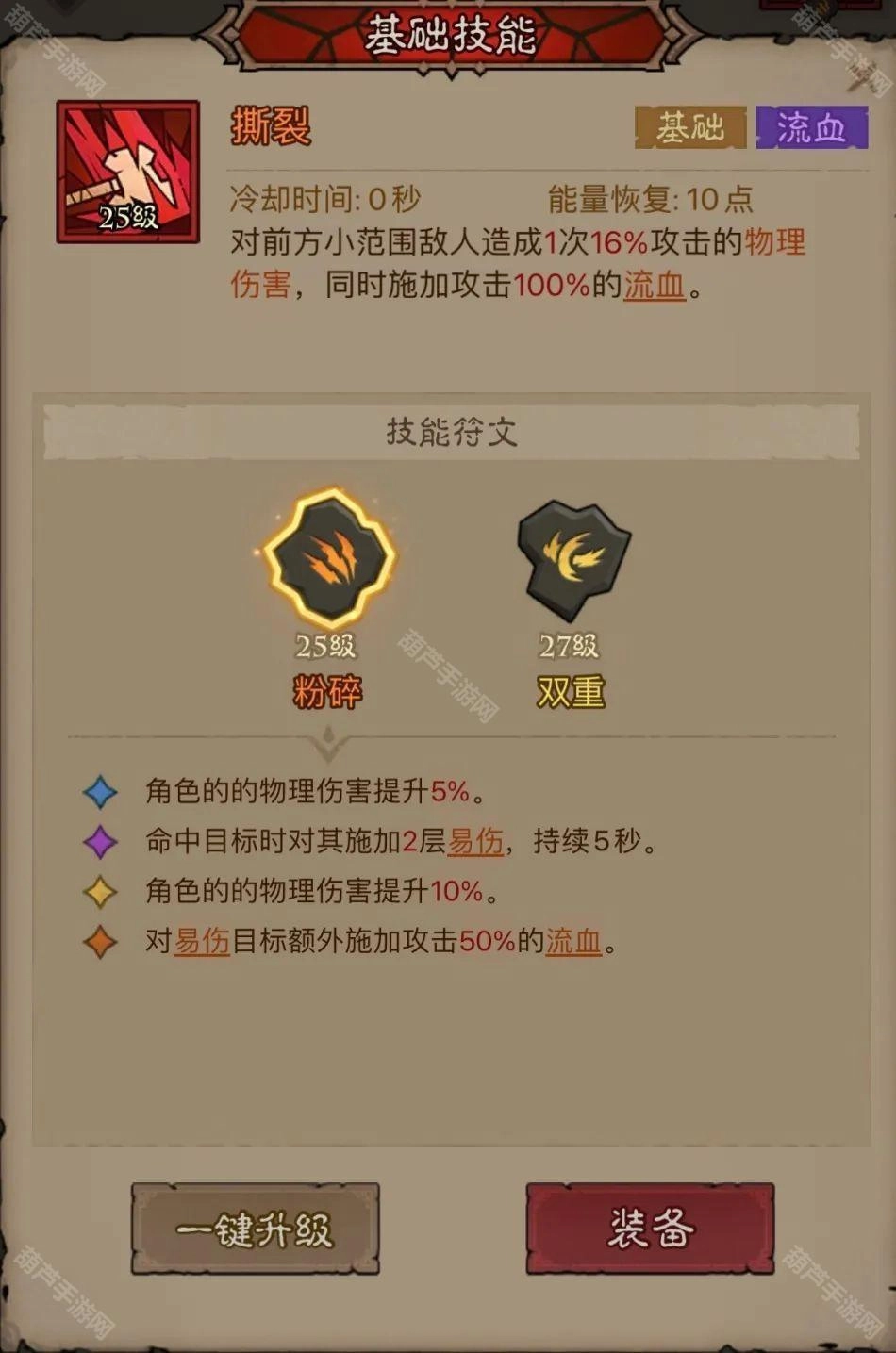 撕裂·粉碎+旋风斩·滚雷+践踏·强劲