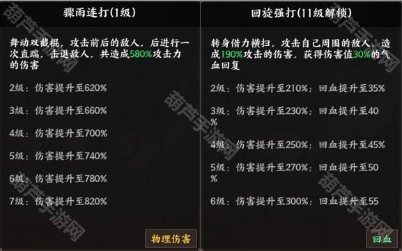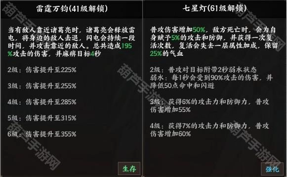 技能效果:提升普通攻击的伤害,当敌方单位死亡时,自身将获得攻击与防御属性加成,同时触发复活效果。