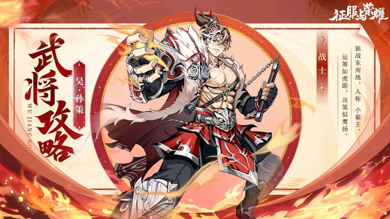在我们的游戏设定里,孙策同样是吴国阵营中一位勇猛善战的战士,充分展现出他“江东小霸王”的威猛气势,一起来看看吧~