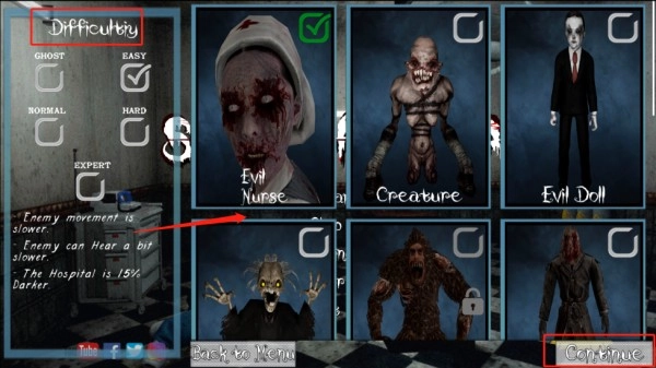 选择游戏难度以及鬼魂进入