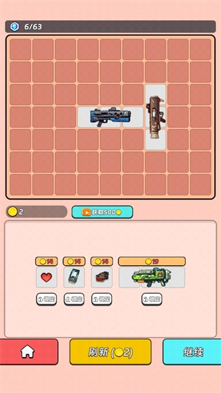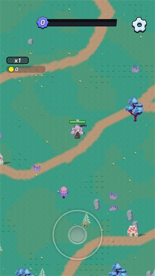 游戏借助虚拟轮盘操控角色的移动与射击,玩家需巧妙躲避敌人的弹幕,同时展开反击来歼灭敌人。滑动轮盘时,角色就能收集到金币。