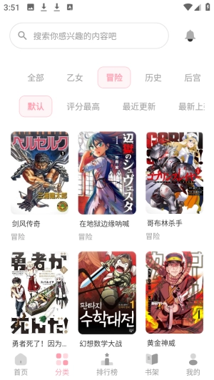 打开花火漫画正式版后,点击“分类”选项进行快速筛选。