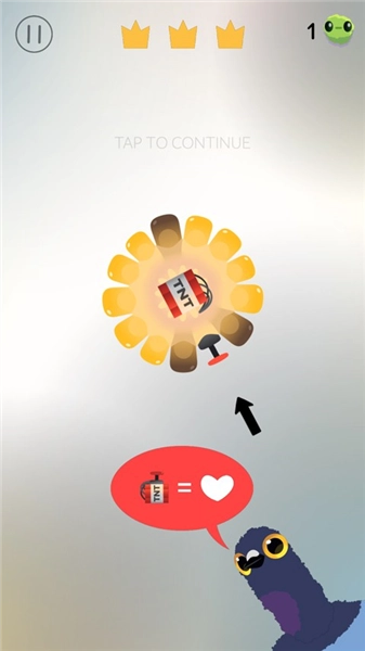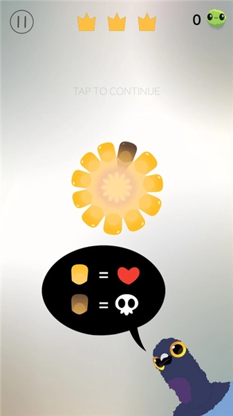 进入游戏界面如图所示,玩家需要通过点击屏幕来操控鸽子啄食玉米,一旦啄到坏掉的玉米,游戏就会失败。