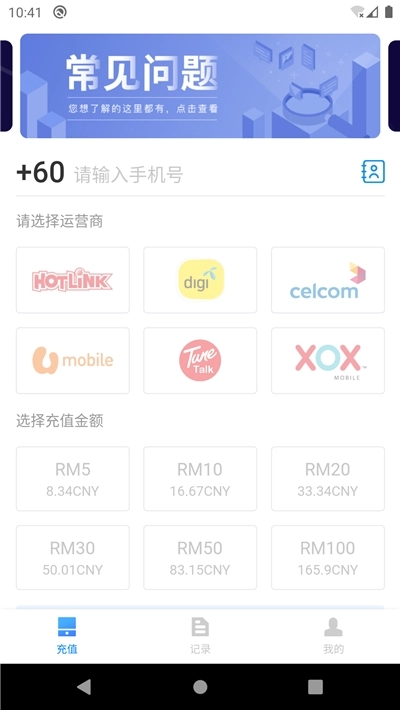 龙行天下是一款软件,主要用于向前往马来西亚的合作伙伴收取当地费用。您可以自主选择不同的运营商,输入手机号码以及不同的收费金额,还能查询所有费用记录。在使用过程中遇到的任何问题,都将由专业人员负责解决。您需要的合作伙伴也可以一同使用该软件。