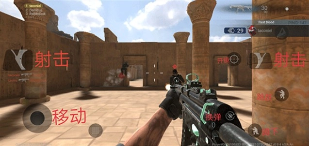 正式进入对局后,你可以借助左侧的摇杆来控制移动,其余的功能键在图里也都分别标注清楚了。