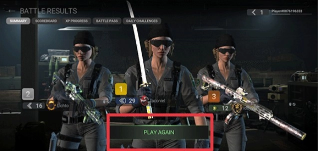 每场战斗结束后,你可以查看自己的战绩和奖励,也可以选择和刚才的队友再开一局。