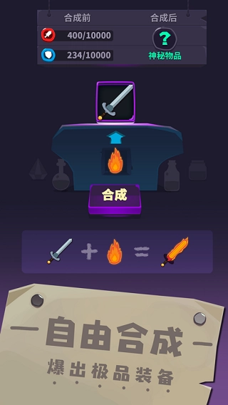 充满了各种奇怪而强大的武器和道具,玩家可以通过合成发现隐藏的极品装备。