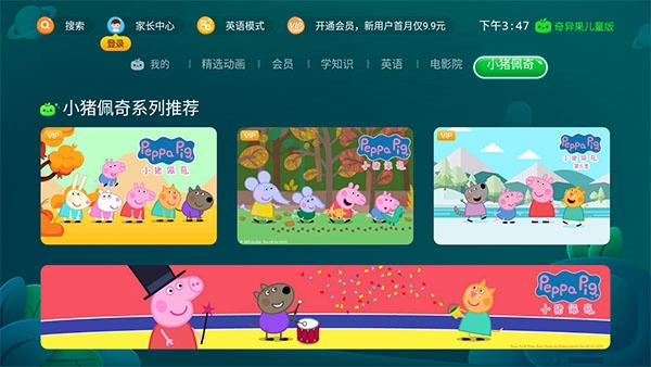 热门IP专区:设有“小猪佩奇”等热门动画专属板块,可满足孩子观看流行剧集的需求