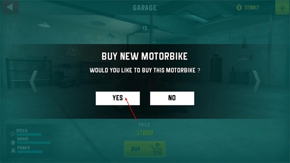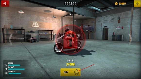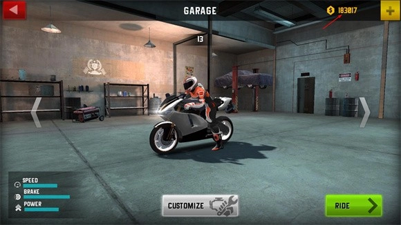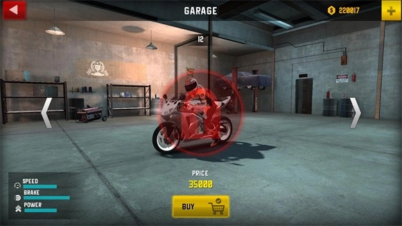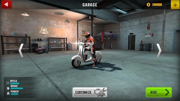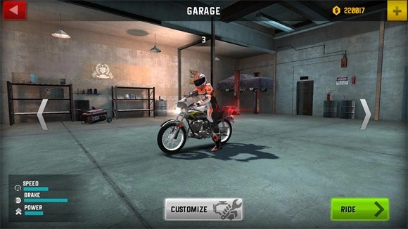 进入主界面后,点击屏幕来选择车辆,通过点击左右箭头能够更换摩托车。