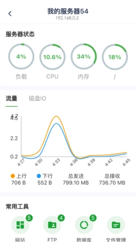 实时监控:动态掌握服务器资源,CPU、内存、磁盘IO、网络情况尽在掌控,确保稳定运行。