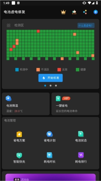 手机电池虚电修复就像你手机的电池管家,它的作用是尽量帮你降低手机电池的消耗,让手机运行更顺畅。比如,当电池显示还有60%的电量时,你没做什么耗电操作,过了几分钟电量却突然掉到40%,这就说明电池显示的是虚电,不是真实准确的电量。如果你遇到这种情况,可以试试这个工具,一键就能完成操作。