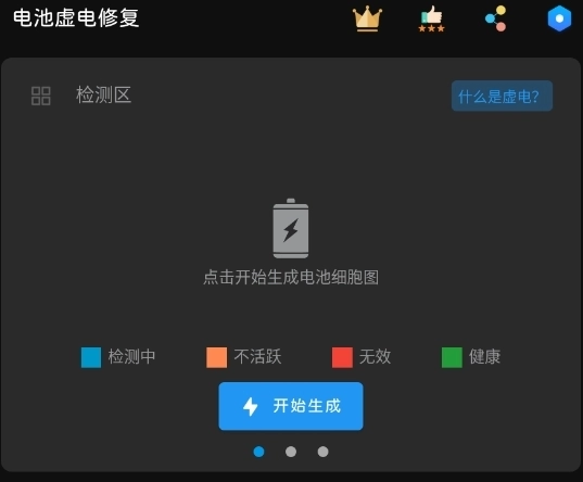 运行电池虚电修复程序后,先查看手机电池的使用状况,生成电池细胞图。
