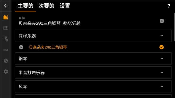 然后右上角设置按键可更改钢琴的乐器和音色。