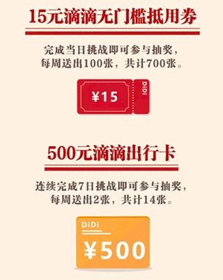 澎湃填字偶尔会推出一些特色活动,用户只要完成每日或每周的挑战任务,就有机会抽取滴滴出行的抵用券或者出行卡。现在就开始参与游戏吧,说不定下一个幸运获奖者就是你!
