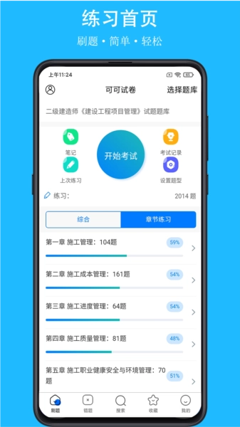 个性化推荐:可可试卷会依据用户所选的题库地区,进行智能练习推荐,首页刷题便捷高效,使学习更契合个人需求。