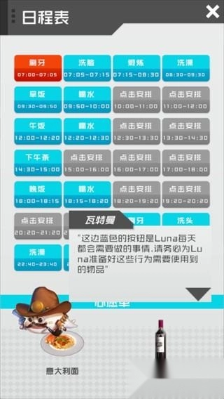 Luna会依据日程安排开展相应活动,而不同的活动会消耗她的健康值。