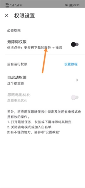 请点击禅师无障碍权限以开启相关权限,请注意不要直接点击黑色小符号。