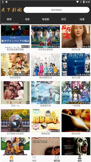 天下影视是一款十分实用的影视播放应用。平台上的影视资源相当丰富,当下各类热门剧集都能在这里找到,画面清晰、播放顺畅,无论是电影、电视剧、动漫还是综艺等内容,都能在此观看。有需求的用户不妨来天下影视体验一番。