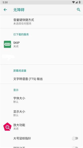 4、点击屏幕中心按钮跳转无障碍服务界面,打开无障碍服务即可