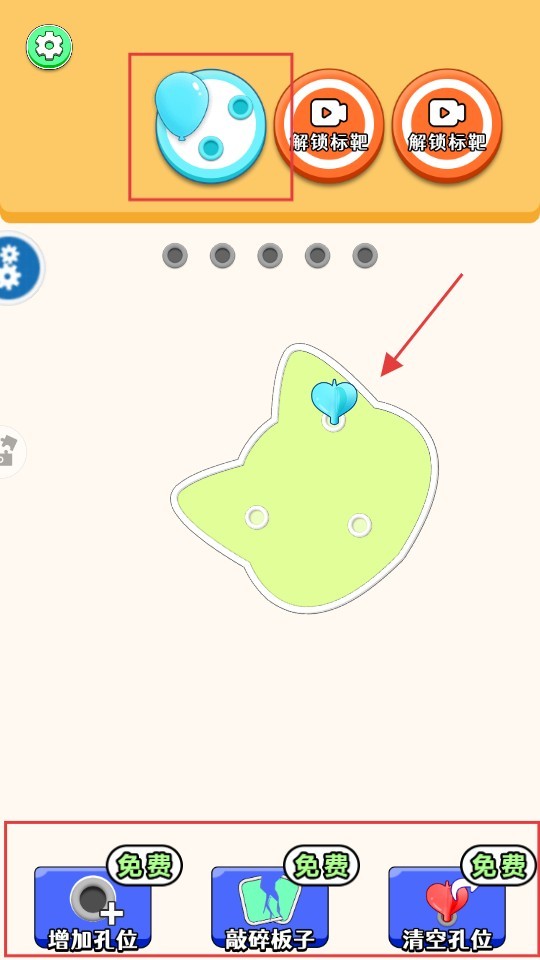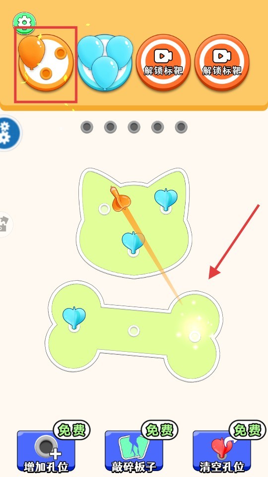 3、点击上方的气球,触发吸光效果,即可消除同色螺丝。