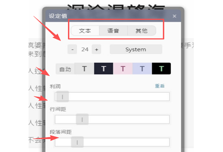 5、其他阅读项数值,可按照自身的实际习惯完成设置。
