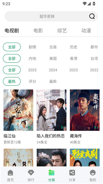 3、借助分类功能,我们能够获取电视剧、电影、动漫、综艺这四大版块的海量影视资源。