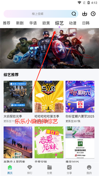 2、通过顶部的分类菜单,可以按照电影、电视剧、动漫、综艺等类型浏览内容。