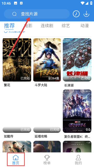 在首页,你可以借助顶部的搜索框来查找片源,也能浏览平台推荐的影视内容。