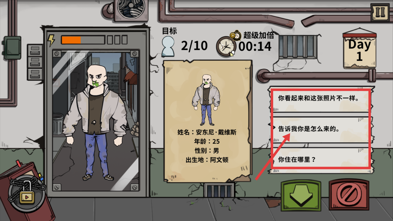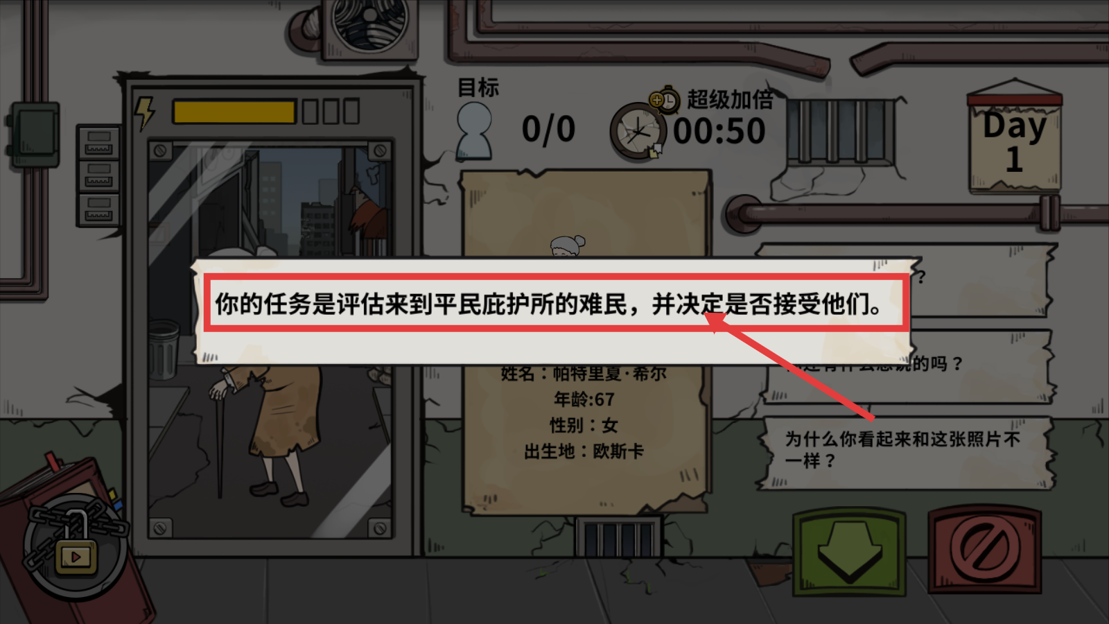 将人物与资料进行比对,注意关注【你看起来和这张照片不一样】【告诉我你是怎么来的】这类判断性选项,以准确甄别出不符合条件的难民。