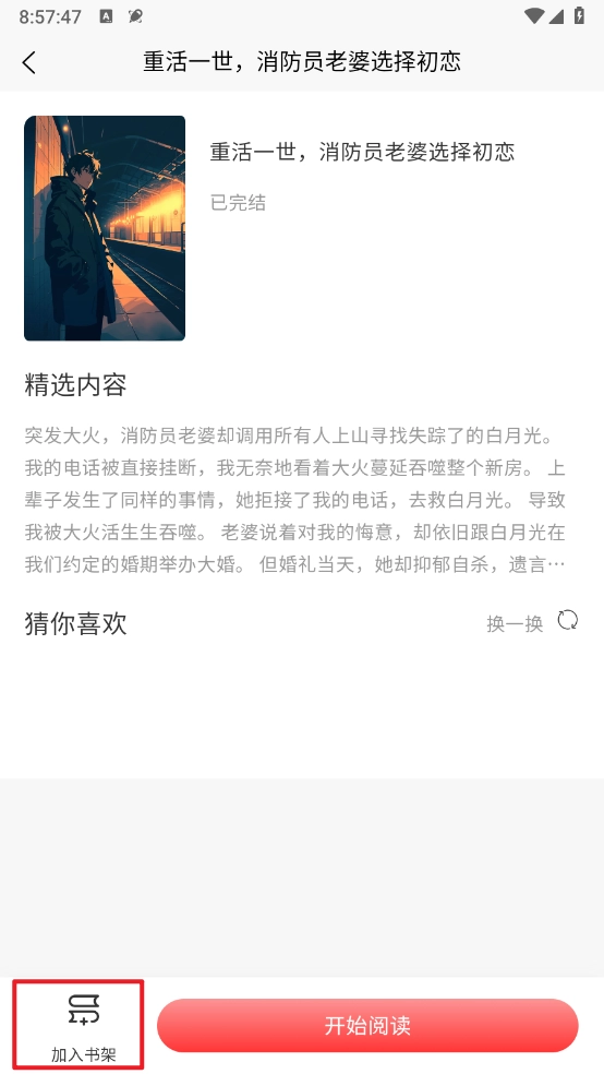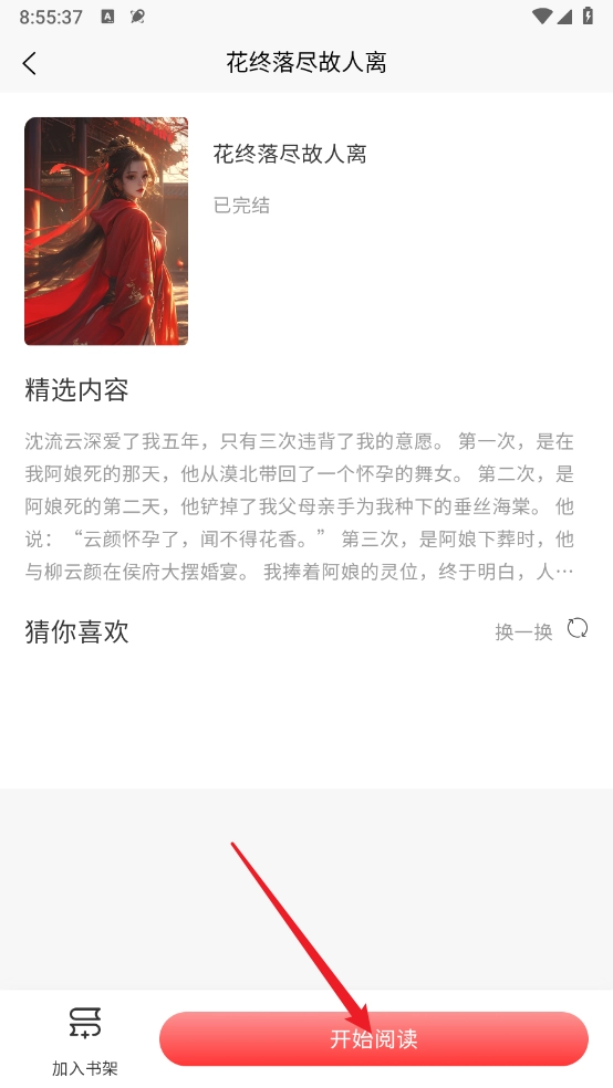 进入小说详情页,点击"开始阅读"。