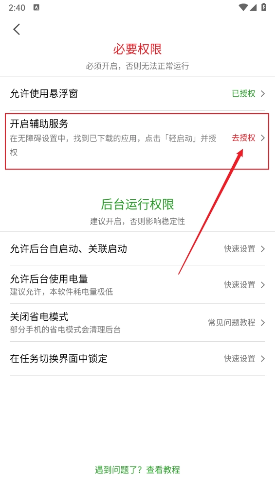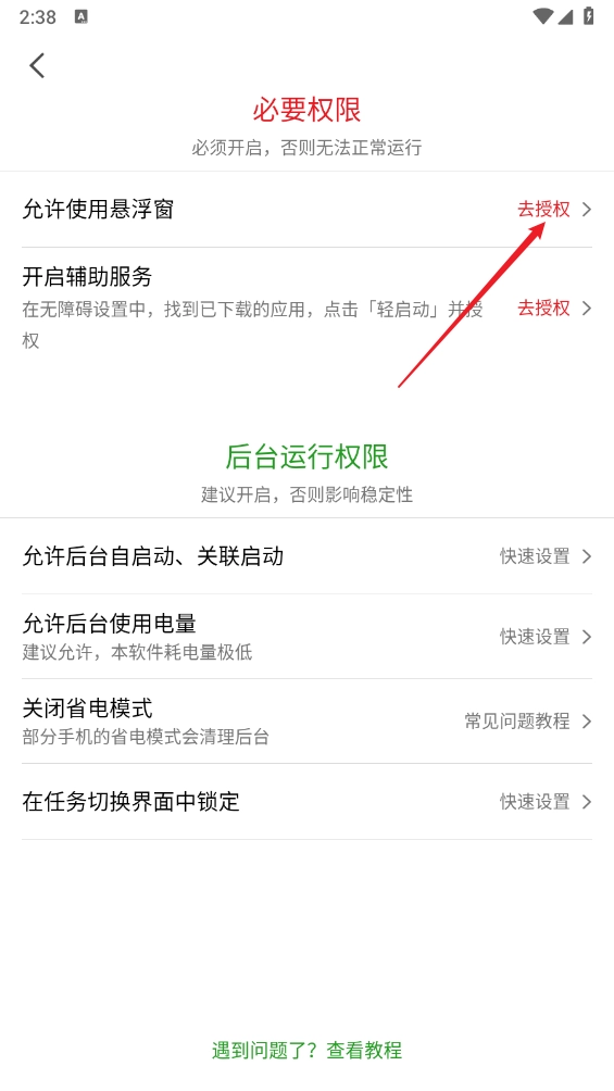 然后点击"去授权",会自动跳转悬浮窗界面。
