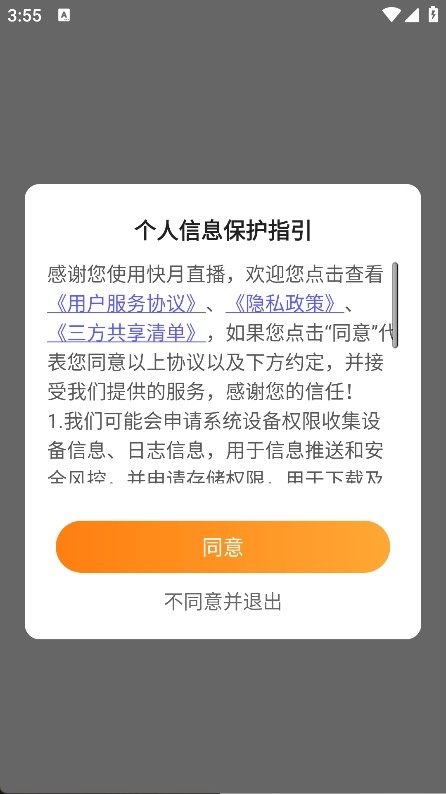 并安装快月直播,点击同意,即可进入下一页面;