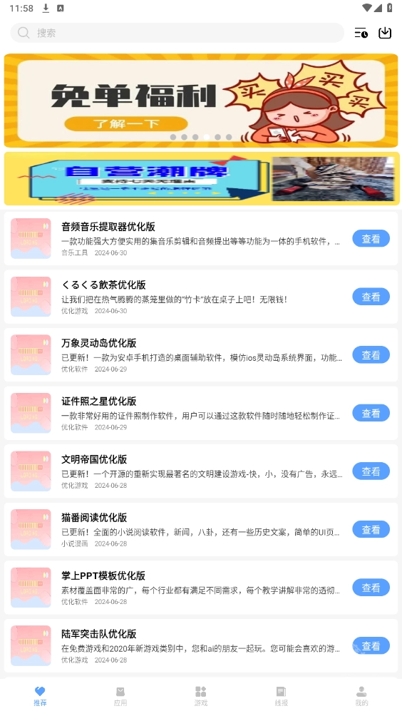 2、优化升级操作:软件库内的全部资源均已完成优化升级,以此保障用户的应用与游戏能够流畅运行,进一步提升使用体验。
