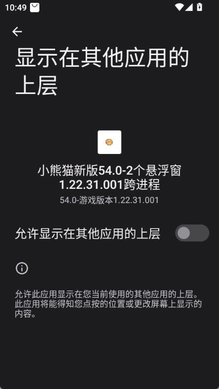 打开小熊猫辅助器后,首先允许显示在其他应用上层