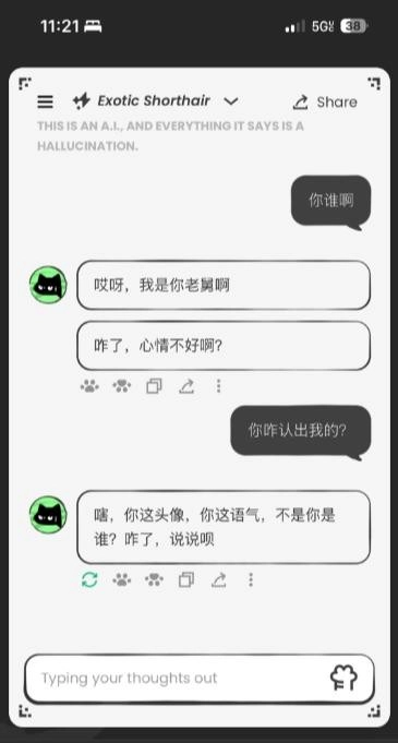 个性化对话功能:用户可挑选不同性格的AI角色(例如橙猫、异国短毛猫等)进行交流,每次开启对话都会刷新角色的人格特点,以此为用户带来丰富多样的互动感受。