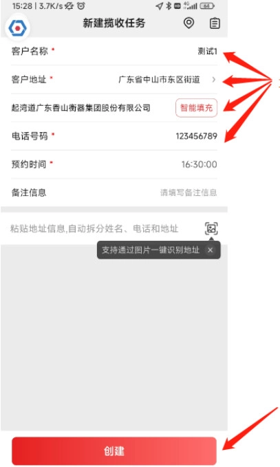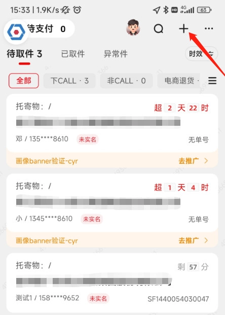 登陆成功后,操作步骤如下:点击页面右上角的“+”号按钮,创建一个新的揽收任务。
