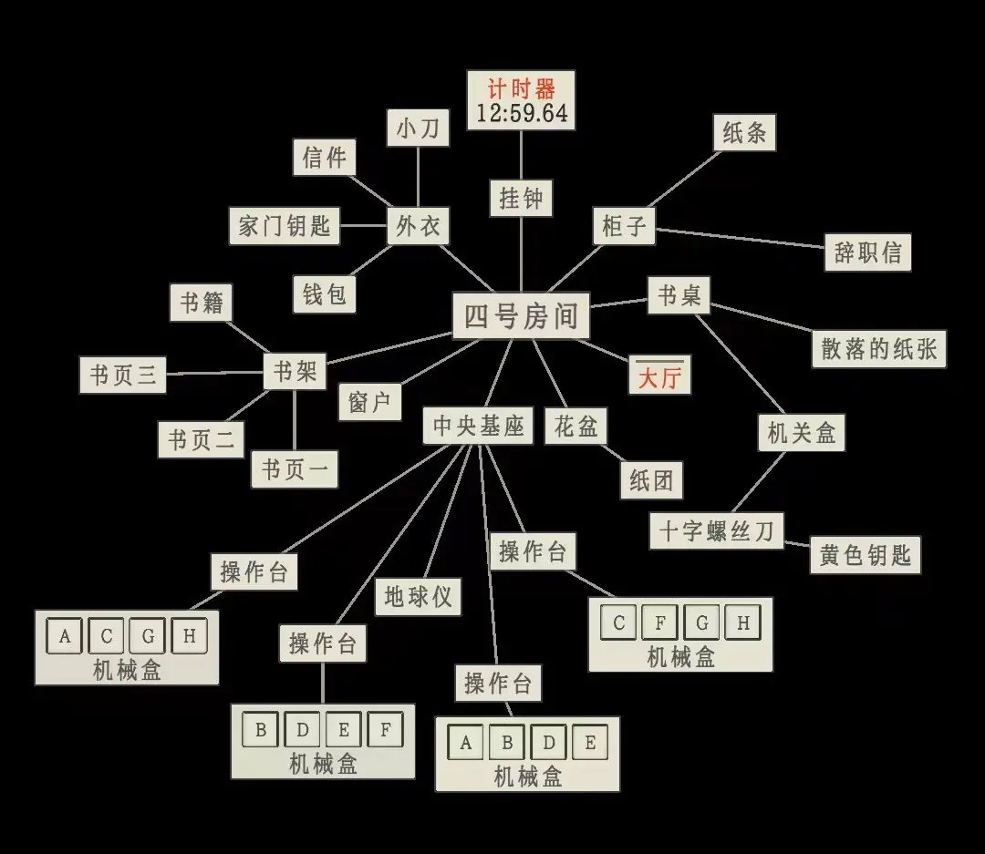 把得到的四种道具放入机关盒