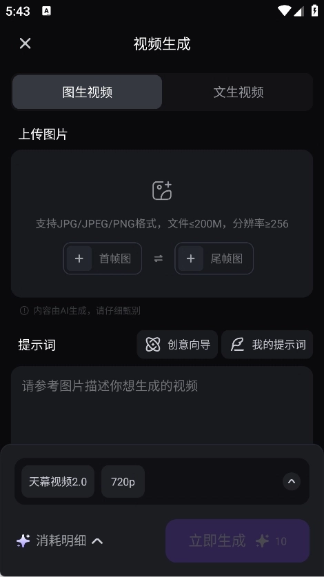 支持文生视频和图生视频,选择所需功能。