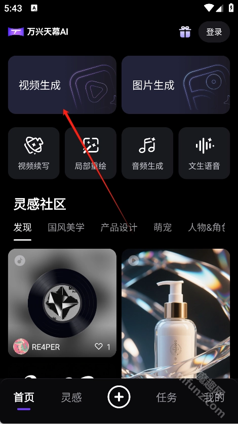 进入万兴天幕AI首页,点击视频生成功能。