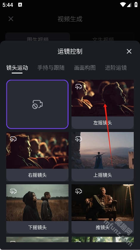 选择运镜控制和视频呈现方式。