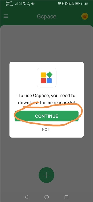 在您通过华为应用市场安装GSpace之前,需要确保设备至少有200MB的存储空间用于安装GSpace的依赖组件,确认后请点击继续。