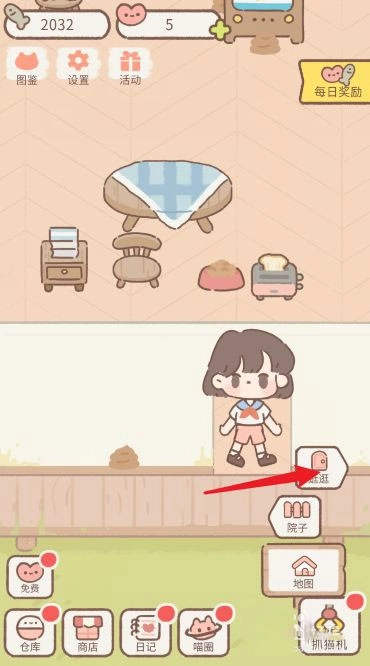 进入遇见你的猫游戏,点击地图图标;