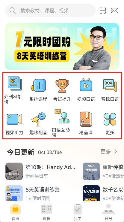 学习功能使用:您也可以选择音标口语、视频听力、口语互动课等功能进行学习。