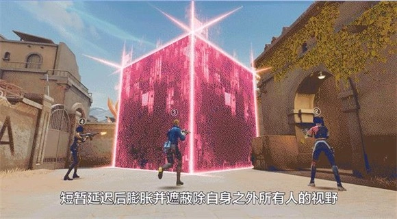 二技能名为“视界封锁”,释放后会生成一个可穿透的数码方块。该方块能遮蔽敌人的视野,不过魅影自身并不会受此效果影响。方块在场上持续数秒后便会消失。