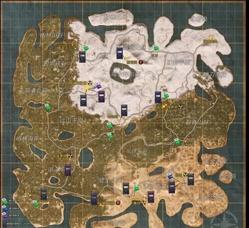 蓝-辐射芯片的刷新位置为绿-辐射芯片卡房内部,以及各大物资点的楼梯和房顶区域。