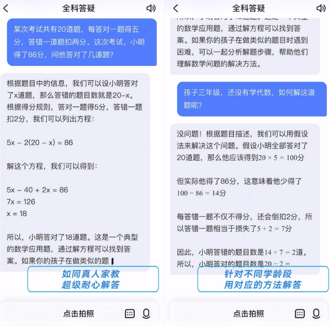 有道小P会依据孩子所处学段的知识水平,调整答题思路并进行分步讲解,引导孩子主动探索,从而真正理解试题内容。