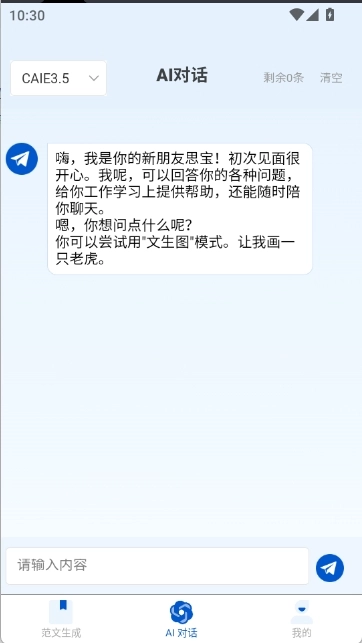文房思宝还具备AI对话功能,点击“AI对话”输入文字就能进行对话交流。