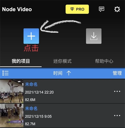 首先打开Node Video,点击这个问号图标进入剪辑主页,然后导入素材。